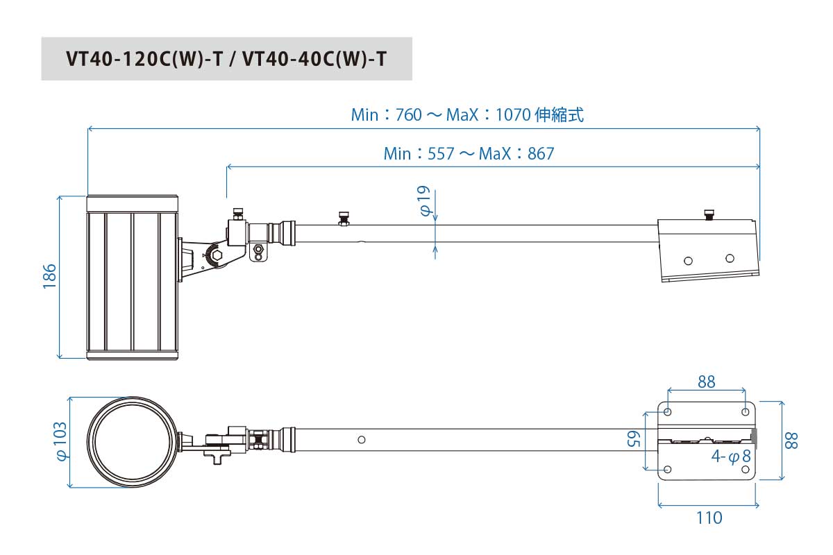 | 質量 | VT20:2.0kg(アーム部含む) VT40:2.5kg(アーム部含む) |